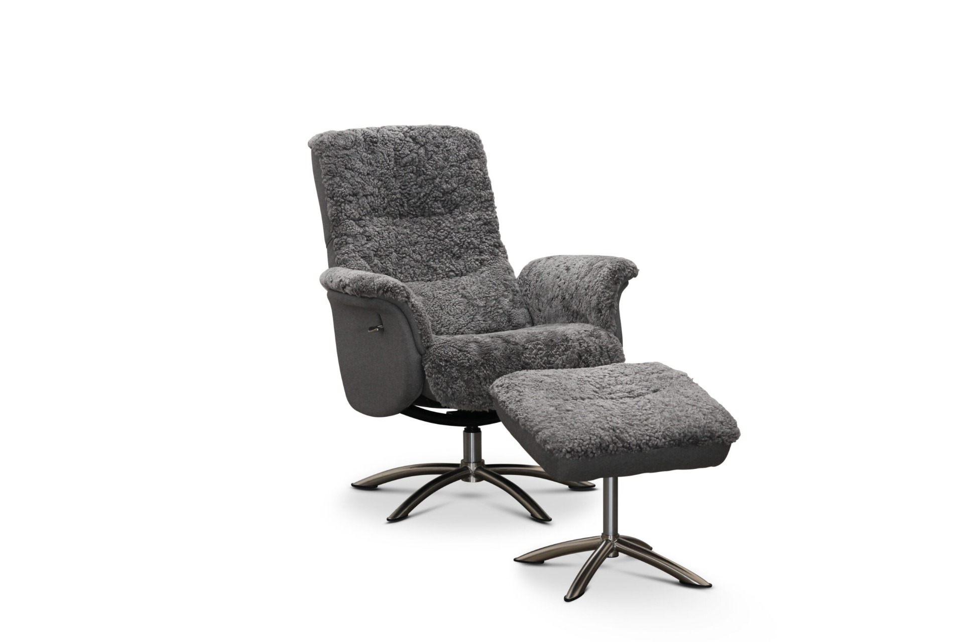 Bergen fåtölj & pall fårskinn grå
