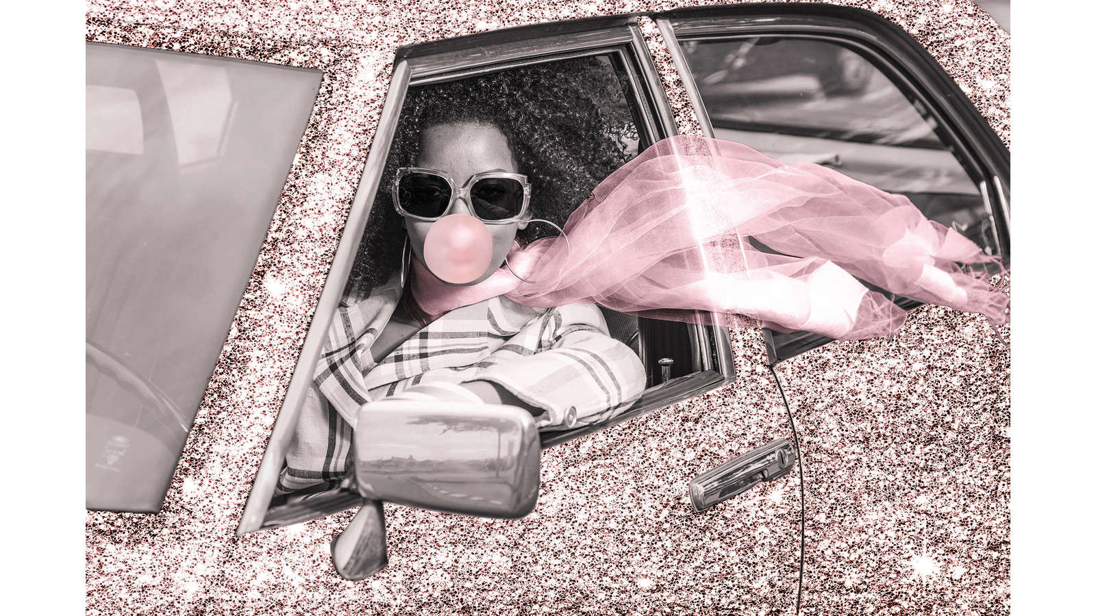 BILDE Bling dame i bil, 80×120, glas