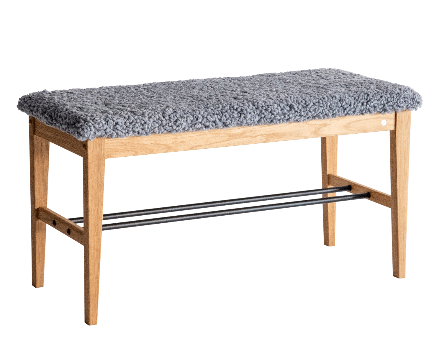 Cora Sittbänk, Oljad Ek / Fårskinn Ljusgrå / Mattsvart stål