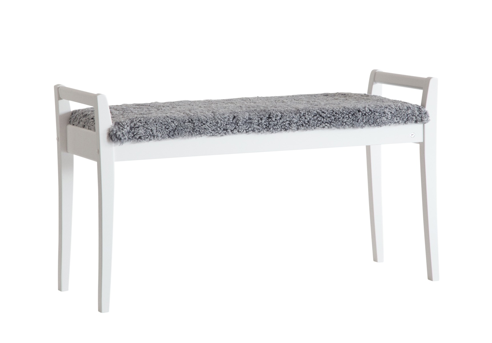 Meja Bänk, Vitlackad Björk / Fårskinn Ljusgrå
