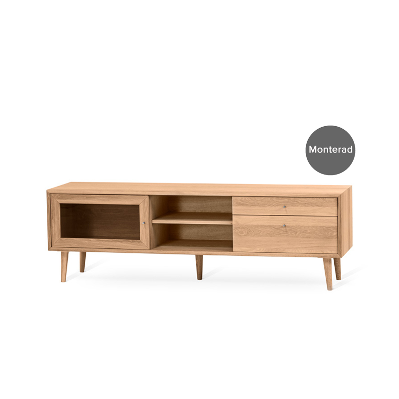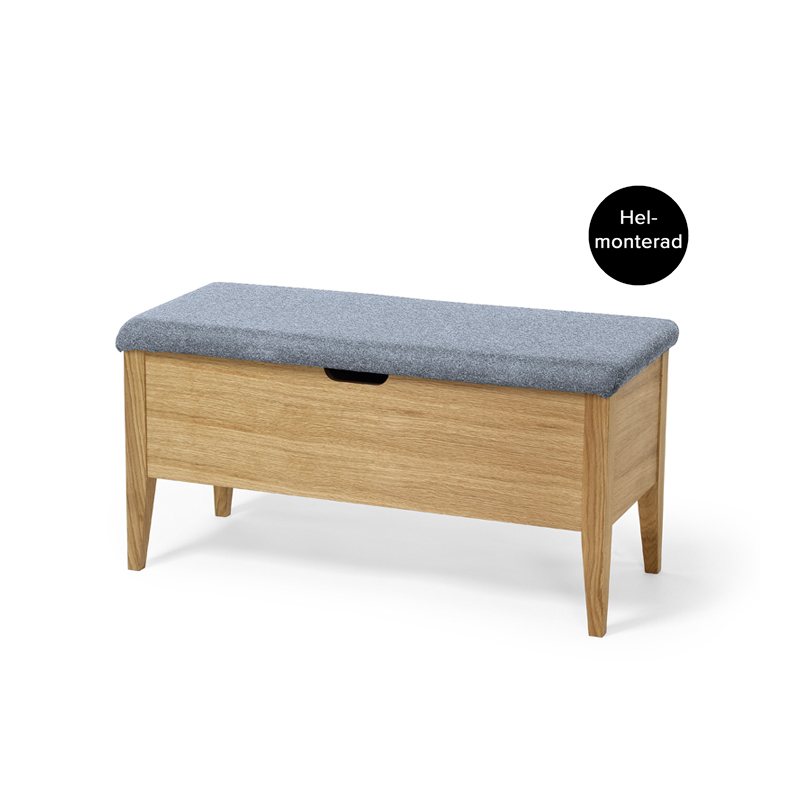 Klinte bänk 90 cm oljad ek med tyg chelsea ljusgrå