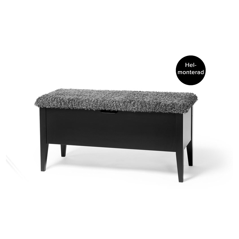 Klinte bänk 90 cm svartlack med tyg chelsea ljusgrå