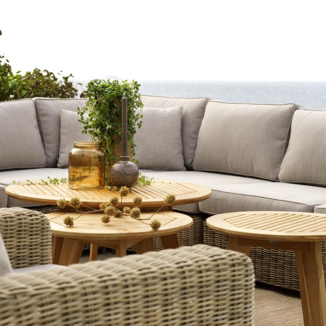 Teakmöbler är också ett vanligt val för balkongmöbler. Trä är ett naturligt material som ger en varm och inbjudande känsla. Trämöbler kan behandlas för att tåla väder och vind, men det är viktigt att regelbundet underhålla träet för att det ska hålla länge.