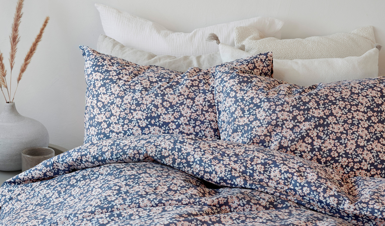 Bäddset blomstertid marinblå