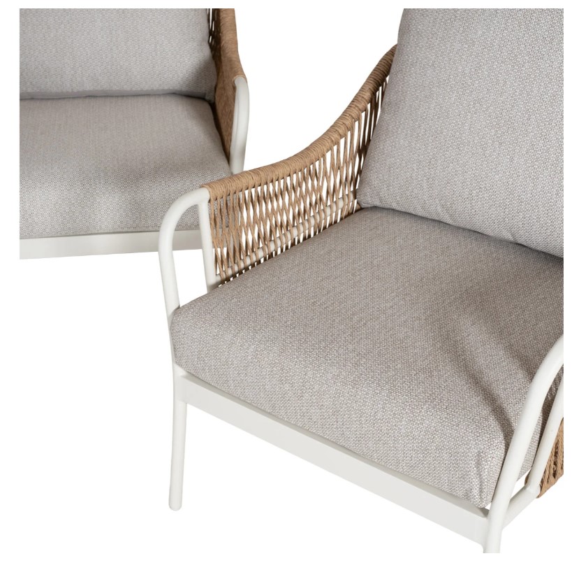 Stommen är av cremelackerad aluminium och dynor i beige allväderstyg som