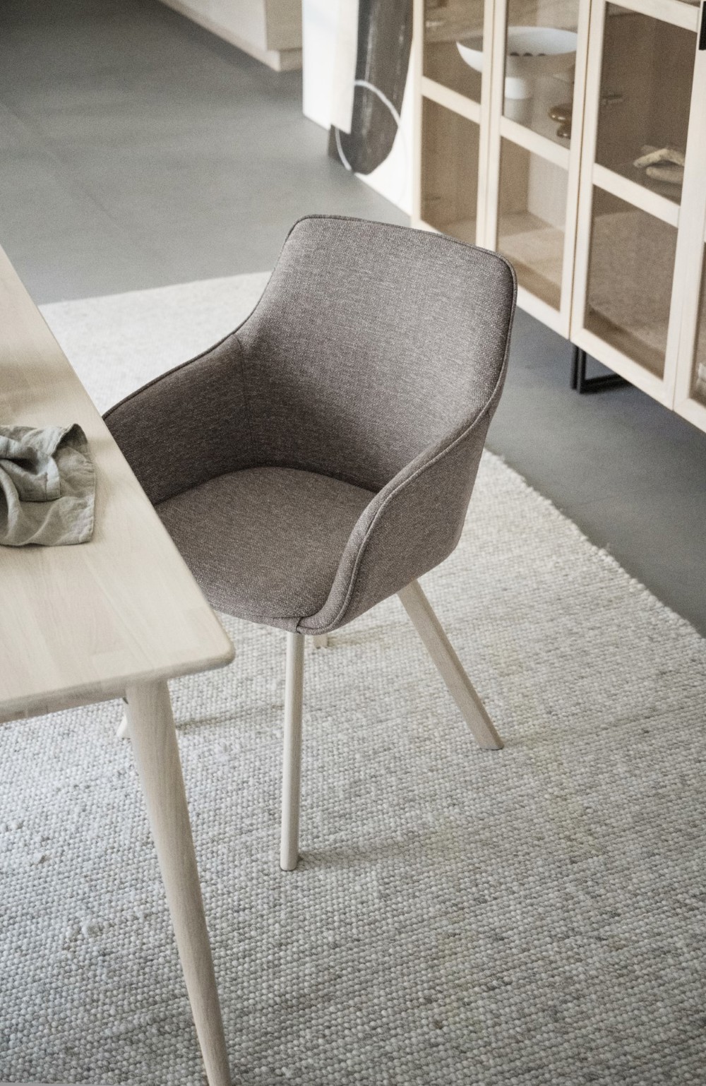 Alison karmstol i mörkbeige textil har precis som populära Alison stol ett snurrbart underrede i 360 grader. Den kupade stoppade sitsen och de höga armstöden gör stolen bekväm och ombonad att sitta i. Alison karmstol med träunderrede gör det lätt att matcha karmstolen med andra trämöbler i hemmet. Träet inuti sitsen och det vitpigmenterade ekunderredet består av 100 % FSC®-certifierat trä. Säljs endast i 2-pack.