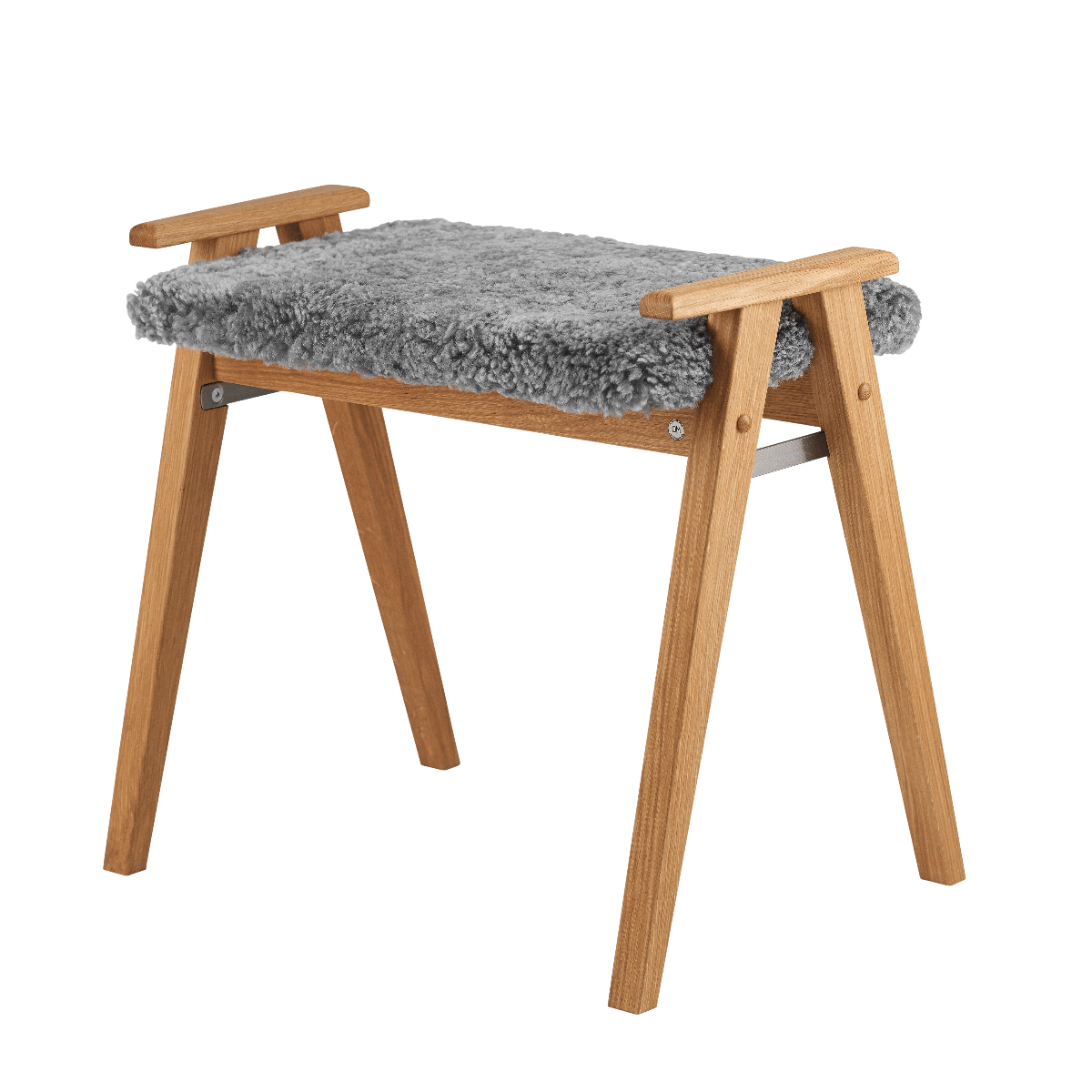 Alme pall finns med ett stort urval nyanser och sex olika klädslar att välja mellan. Pallen är tillverkad i massiv ek och i vitlackad massiv björk, beslag i slipat stål. Sitthöjden på pallen är 46 cm, längd 57 cm och djupet 39 cm.