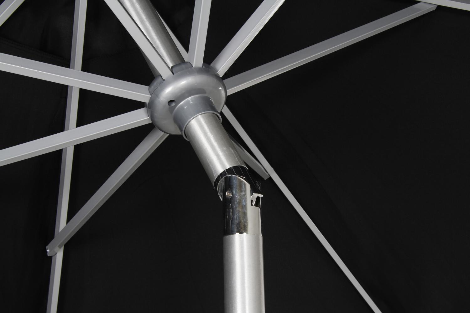 Parasollet har en 2-delad silverfärgad aluminiumstång som har en diameter på 48 mm. Stången har även en vev och push-tilt funktion som gör att man enkelt kan vinkla parasollet. Duken består av en 210 grams olifinväv med ventilationslucka och som hålls uppe av 8st ribbor