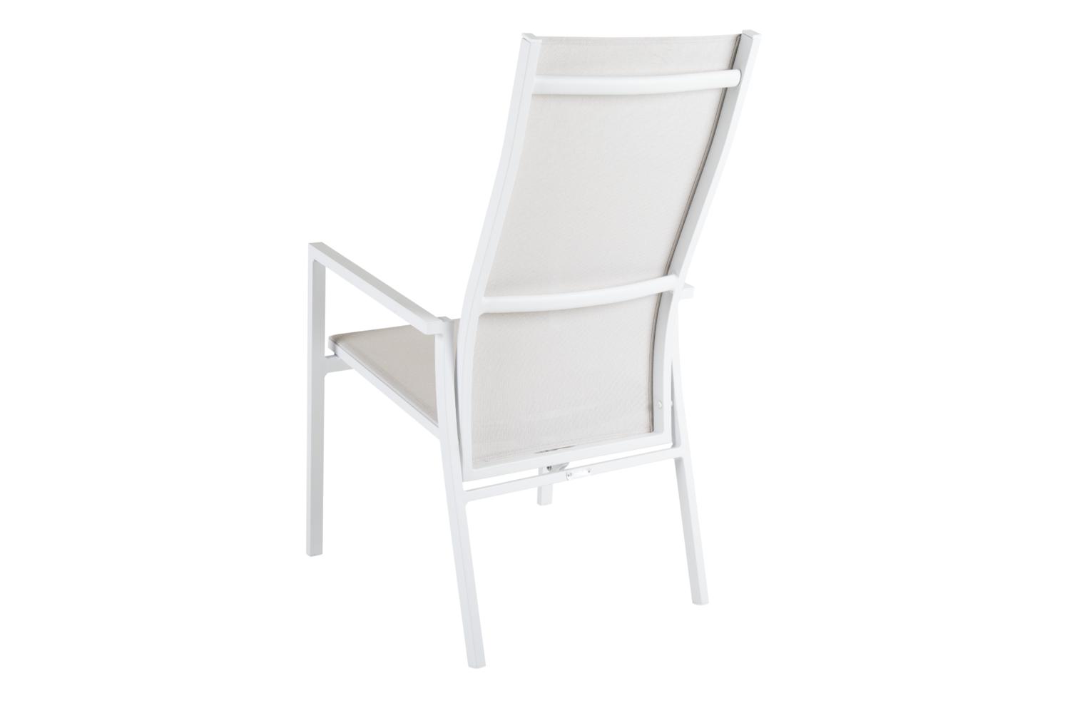 Stapelbar positonsstol i aluminium med sits och rygg av tålig underhållsfri textilene.