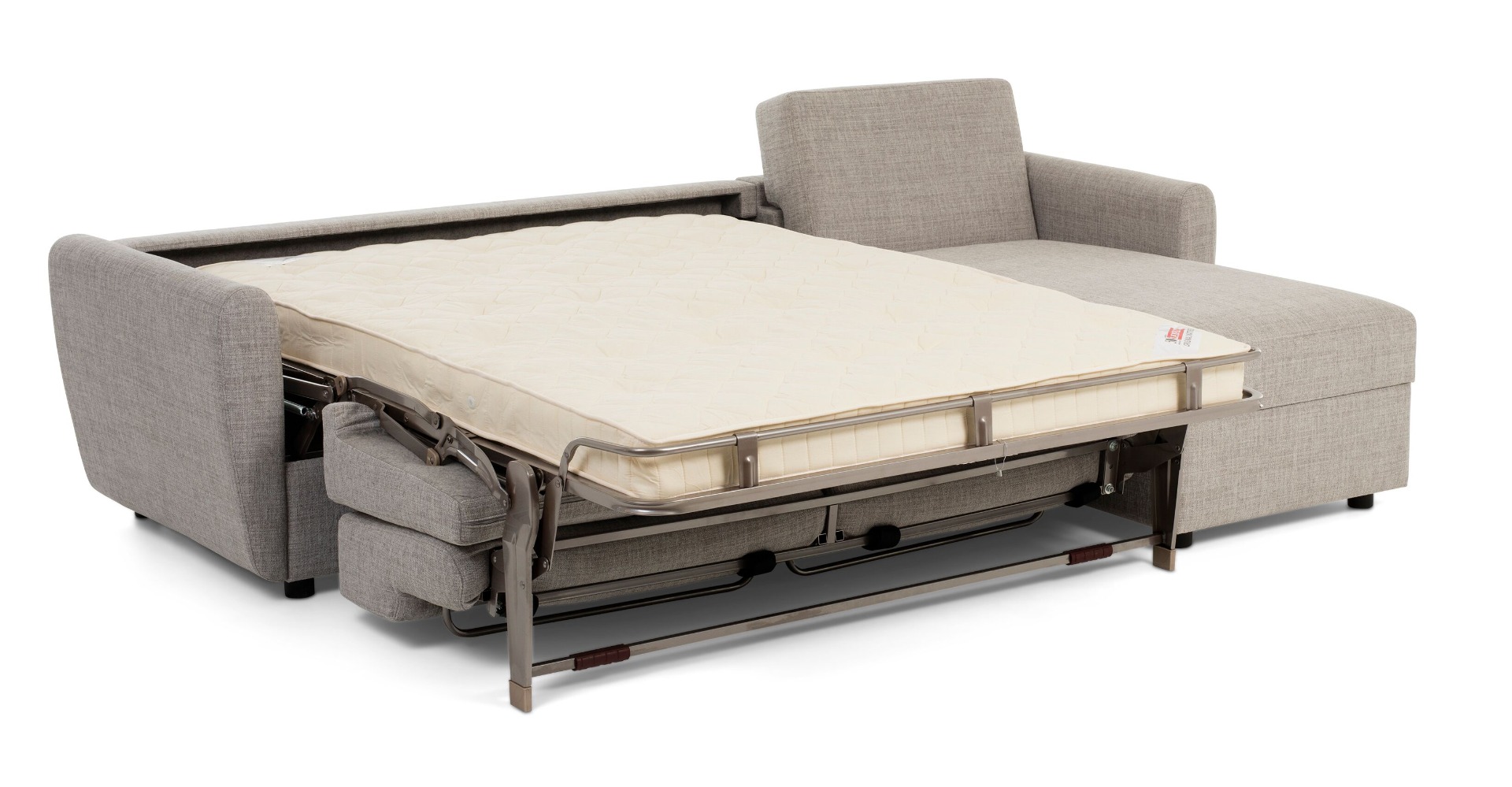 Snygg bäddsoffa med divan som fungerar lika bra i vardagsrummet som i gästrummet.