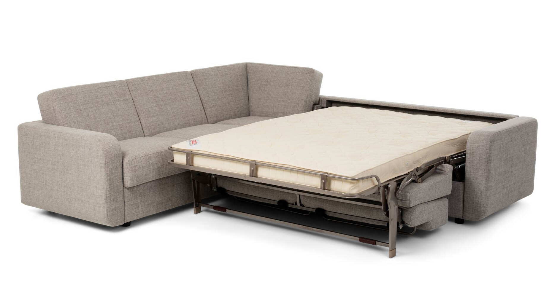 Smart hörnsoffa med säng i den längre delen och förvaringsutrymme i 2-sitsen.