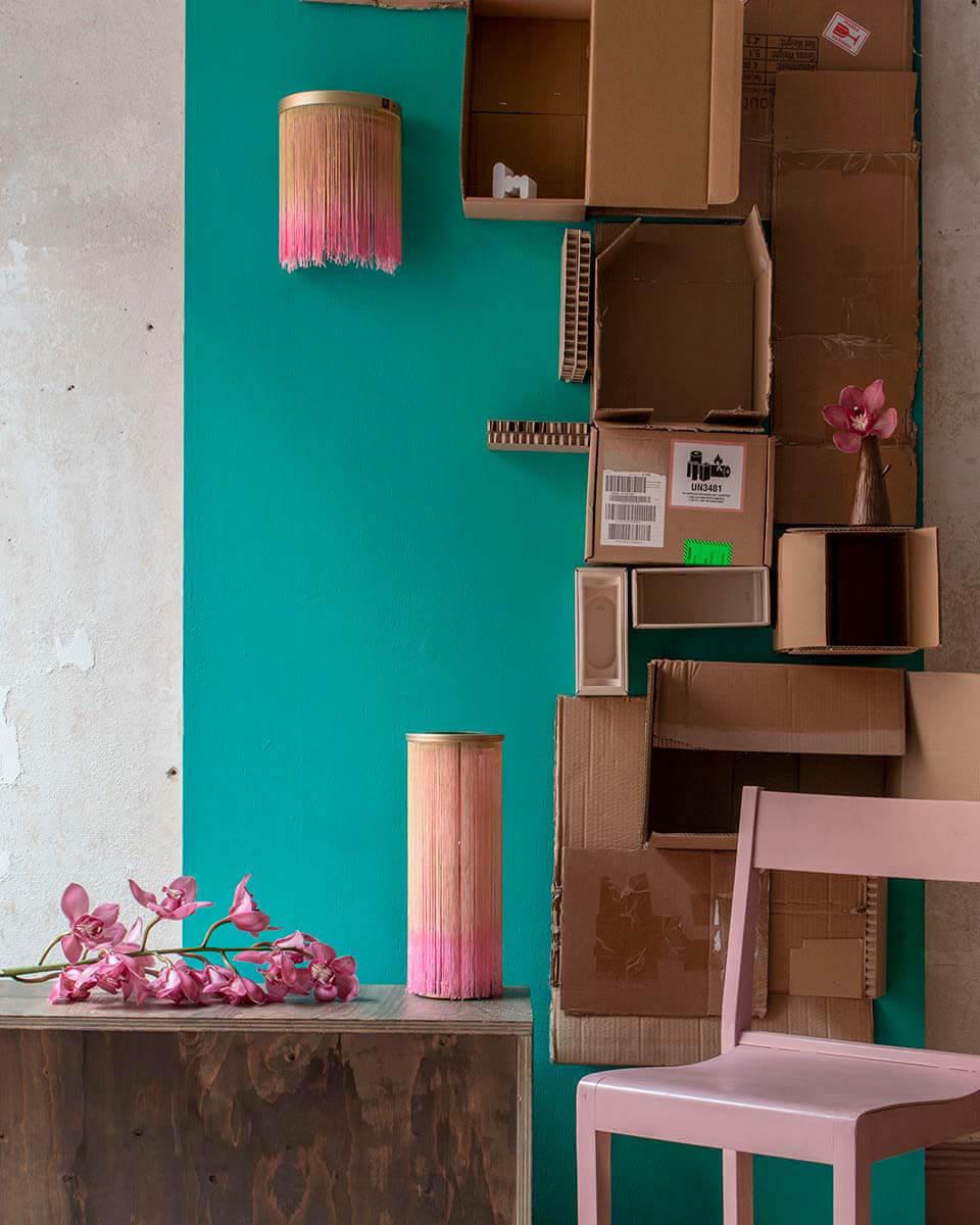 Låt oss presentera vår otroliga designer Trendstefans nya, moderna och exceptionella vägglampa Blondie! Blondie vägglampa har en guldig halvcirkel som fäste för ett gäng vackra tygtrådar som faller ned likt ett vattenfall från fästet. Tyget är målat i vacker orange och rosa vilket ger lampan en riktig wow-känsla. Denna vägglampa är ingen vägglampa du hänger undan i ett hörn eller endast använder som belysningspunkt: denna vägglampa är ett konstverk i sig. Sätt färg på ditt hem och låt 70-talet flytta in igen!