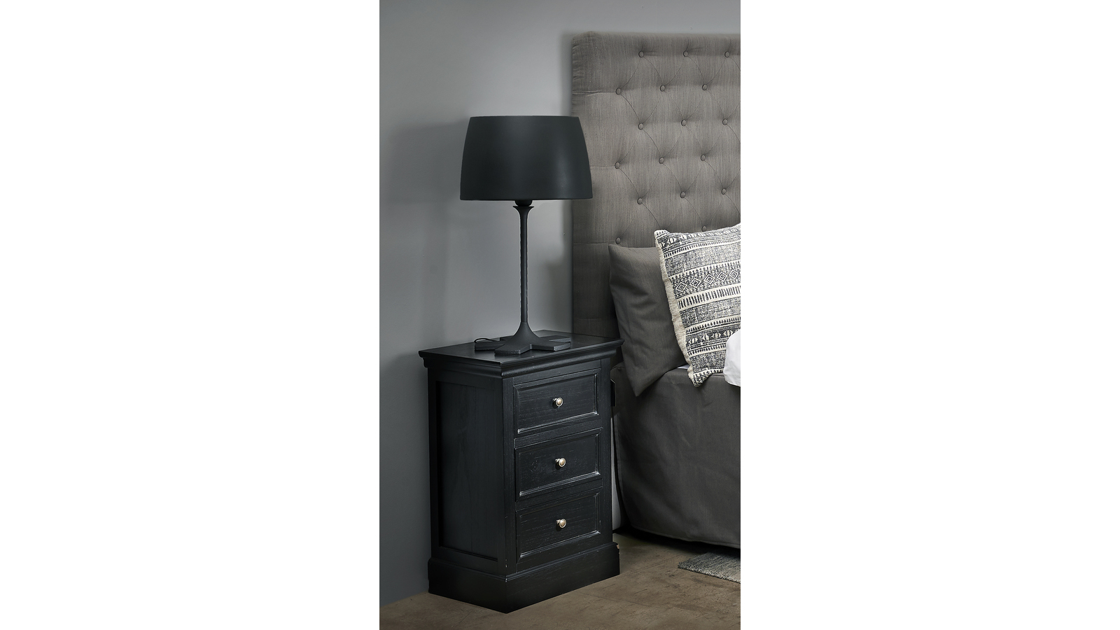BRISTOL Sängbord 3 lådig Antik svart h70