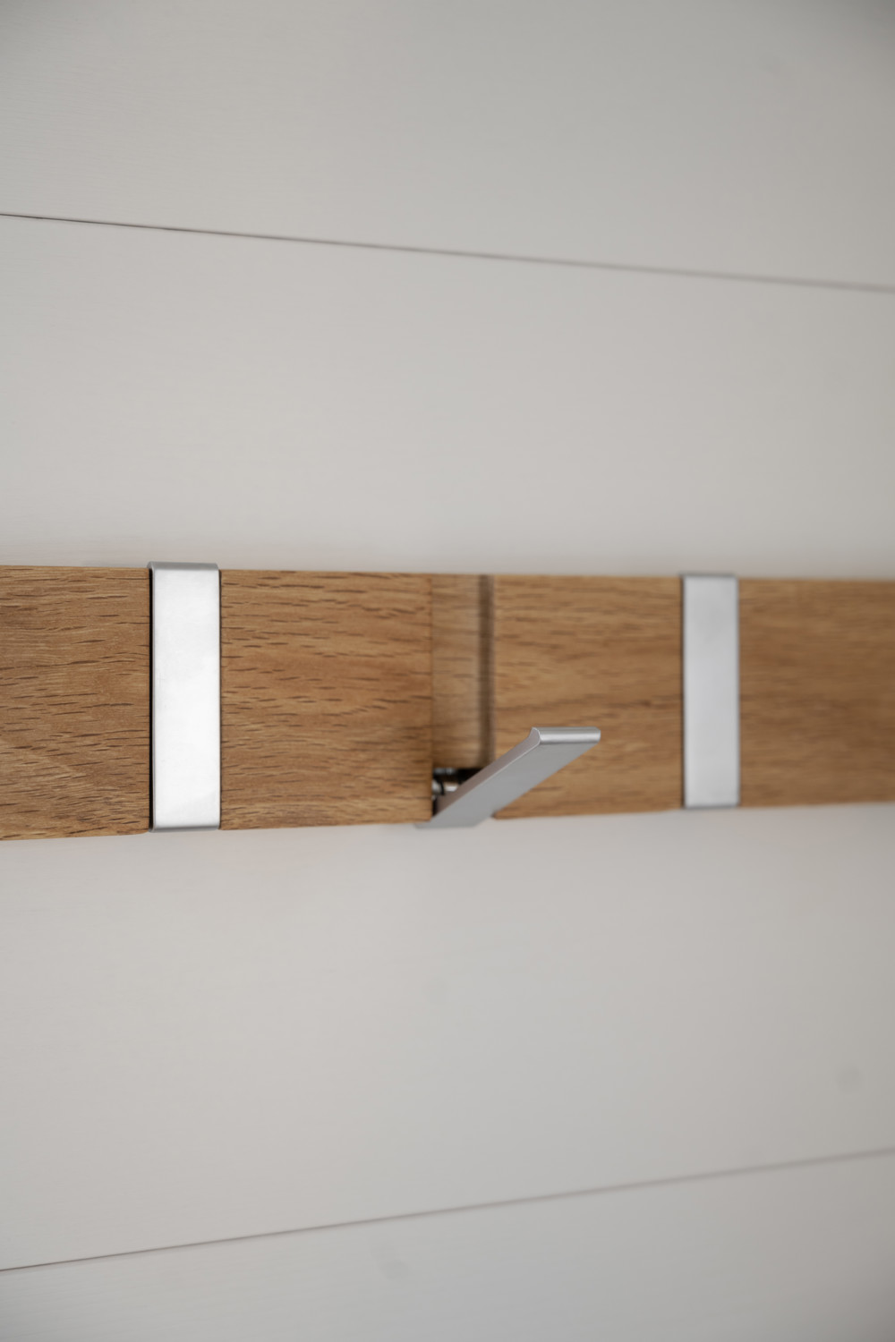 Confetti klädhängare i massiv och oljad ek. Smarta utfällbara krokar i metall. Klädhängaren ingår i vår serie Confetti.