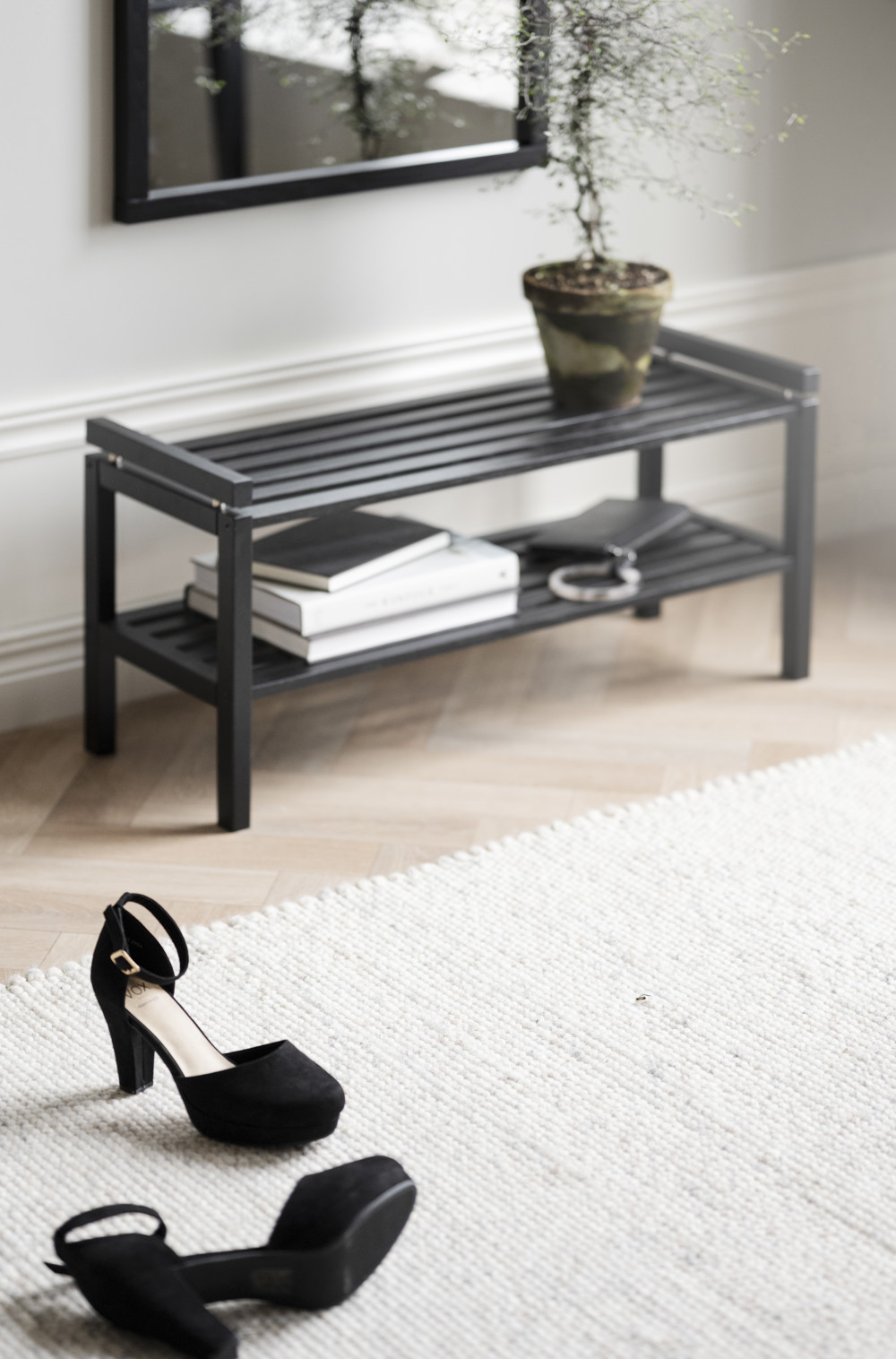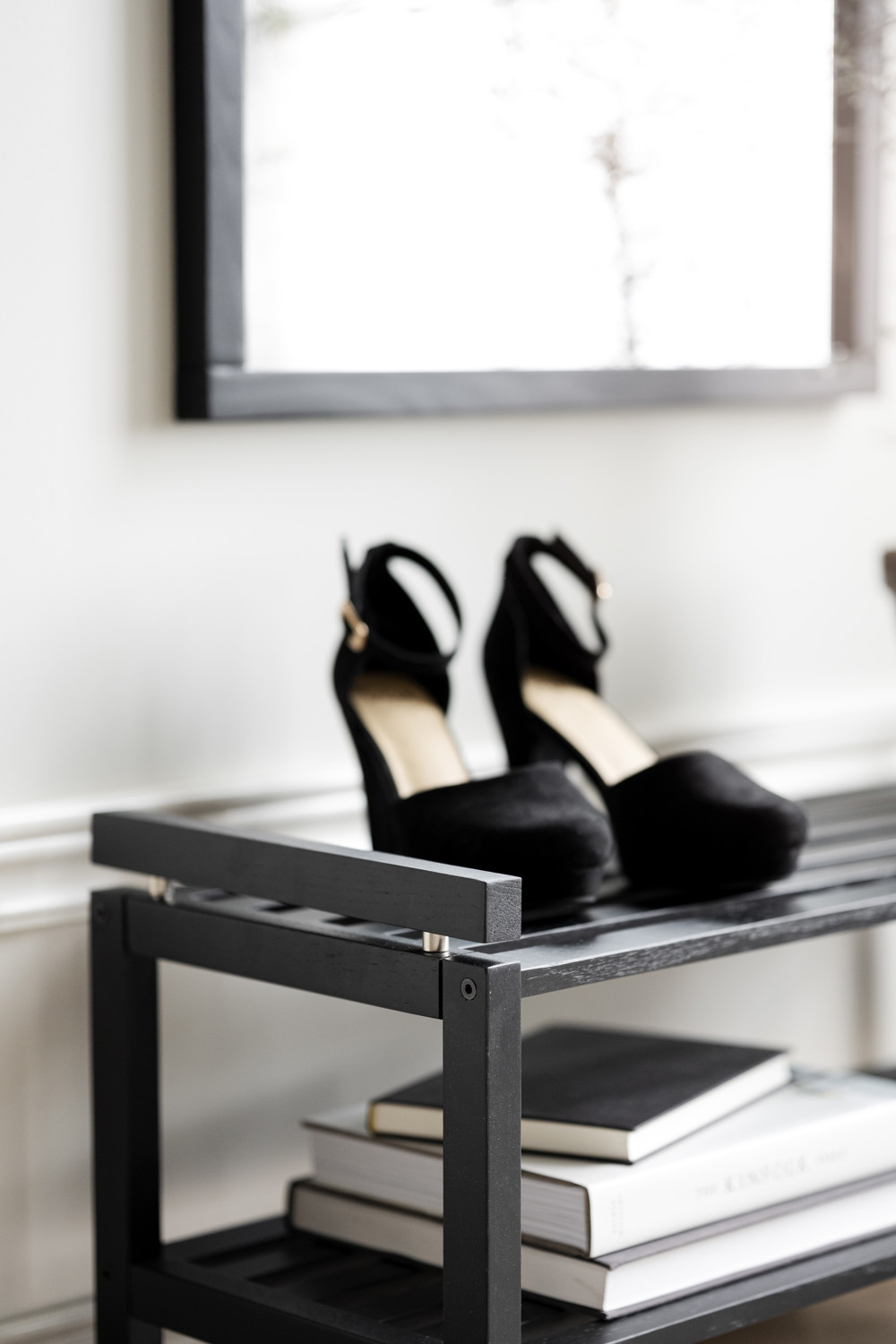 Confetti skohylla i massiv och svartlackad ek. Stilren och enkel att placera. Skostället ingår i hallserien Confetti.