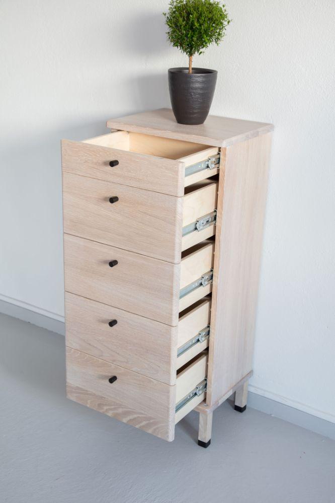 Cora byrå finns i höjd 79 cm och 96 cm. Byrån finns i följande utförande, oljad ek, lackad ek, rökt ek, vitoljad ek, svartbetsad ek.