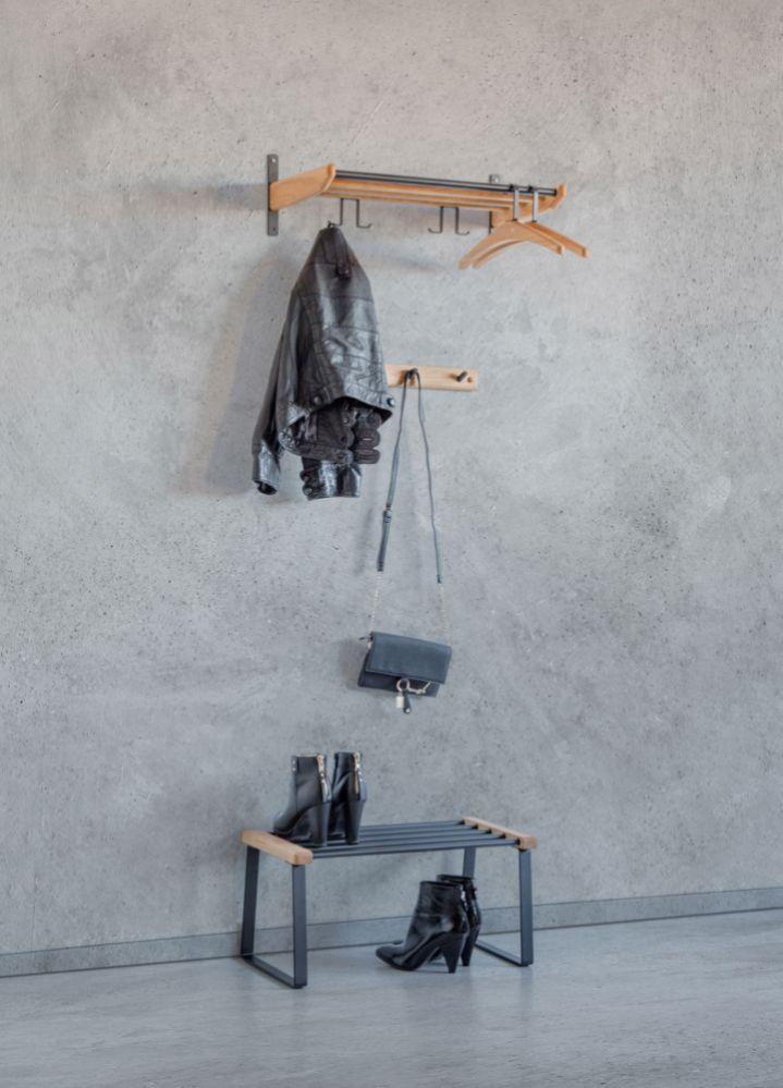 Cora Skohylla L90, Oljad Ek / Mattsvart stål