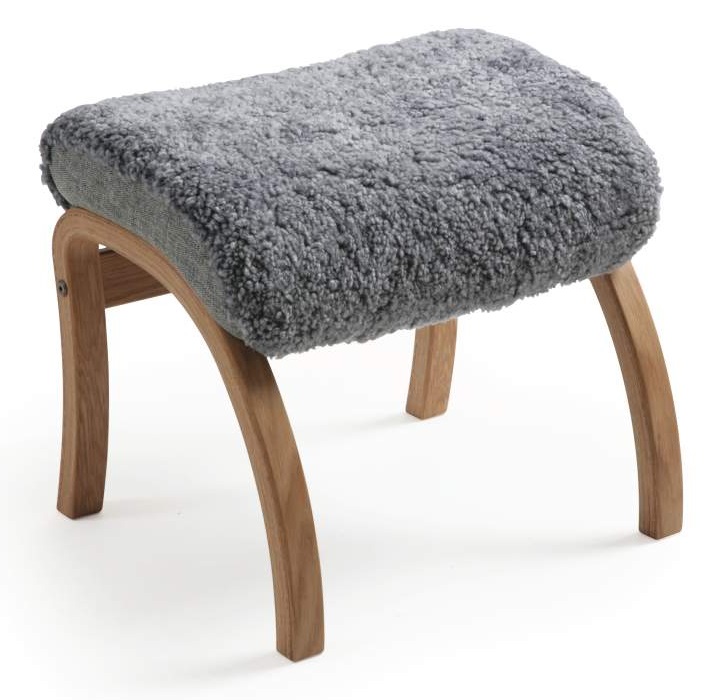 Pall med stomme i oljad ek och klädd i fårskinn.