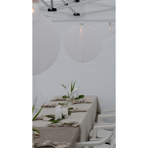 Lampskärm för både inomhus och utomhusbruk. 40cm i vit textil. Mixa och matcha med våra upphäng och ljuskällor. Även möjligt att lägga en ljusslinga inuti för ett vacker sken.