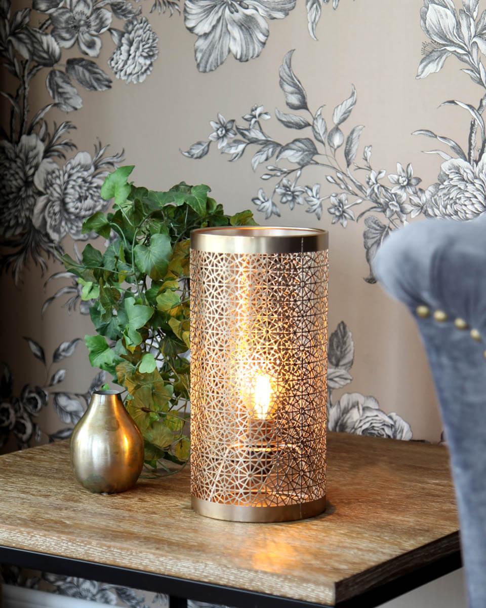 Hermine är vår karismatiska bordslampa som har ett otroligt inbjudande sken. Den varma mässingfärgen ger ett varmt intryck och mönstret ger lampan stark karaktär. Hermine är en serie som även finns som golvlampa, vägglampa och taklampa. Till bordslampan behöver du en ljuskälla med sockel E14, 45 mm. Hermine bordslampa lyfter den enklaste miljö till något alldeles extra.