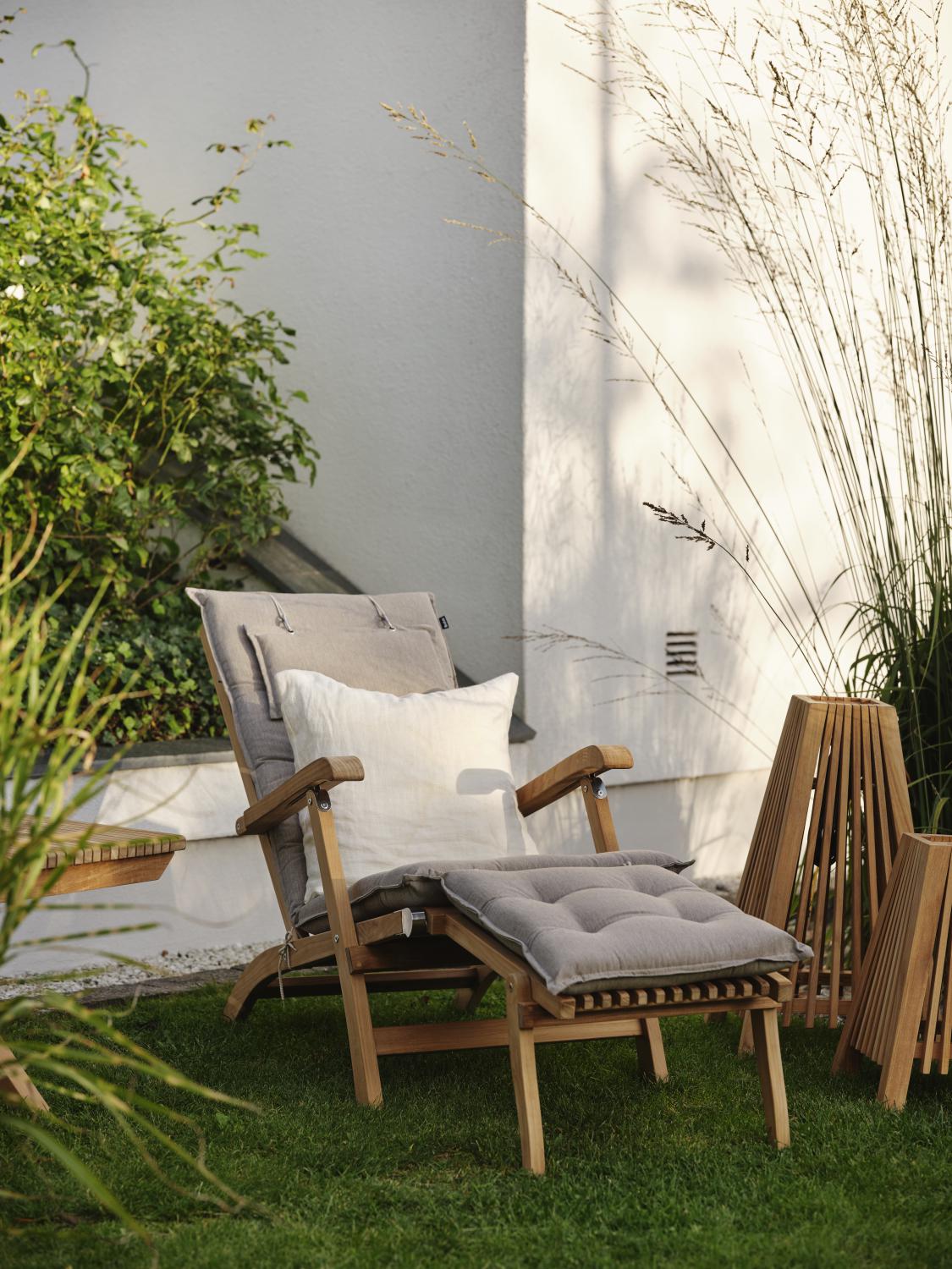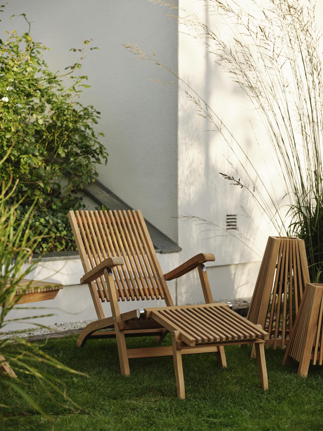 Koppla av med stil. Denna generösa däckstol har en härlig blandning av komfort och skönhet. De raka linjerna i teaken kommer verkligen till sin rätt i denna långa utemöbel. Vikbar.