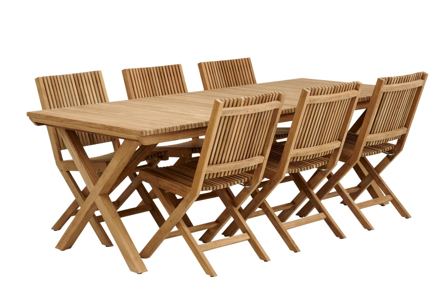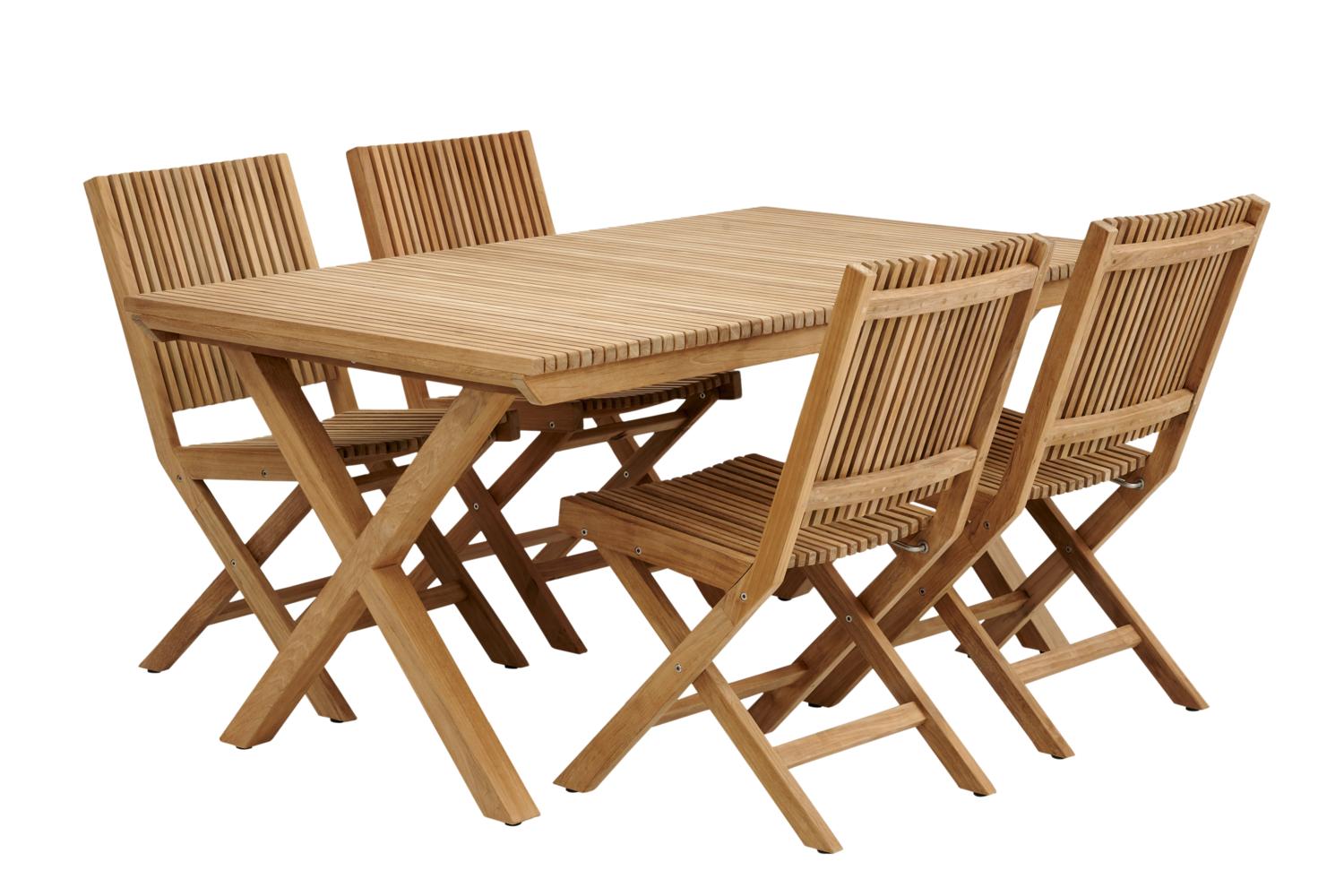 En vacker premiumgrupp med tvärgående teakribbor som genomgående inslag – Julita tar de raka linjerna från den skandinaviska designen med sig och skapar en skön matplats som sticker ut med sin stil samtidigt som den smälter in i omgivningarna.
