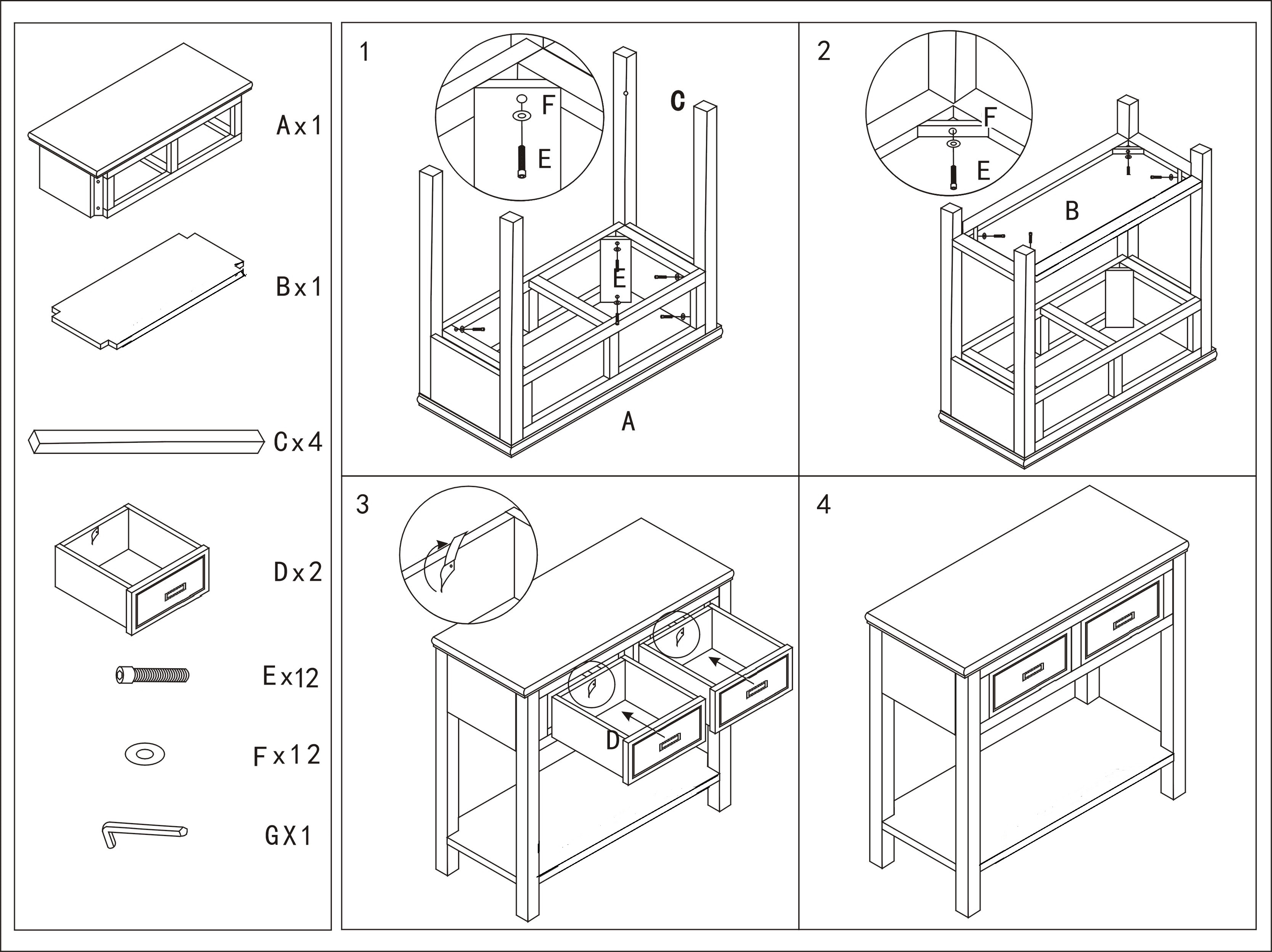 KNIGHT Konsollbord, 2 lådor/1 hylla