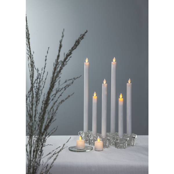 Verklighetstrogna antikljus i vax med vickande låga. Skapar ett mysigt och behagligt sken inomhus. Ljusen är batteridrivna med inbyggd timer som gör det enkelt att ställa in när de ska lysa. 2-pack. Drivs av 4 st. AA batterier. Batterier ingår ej.
