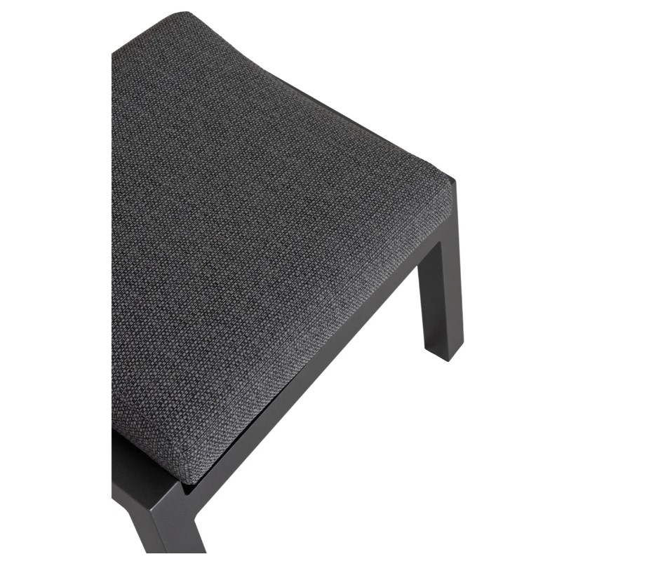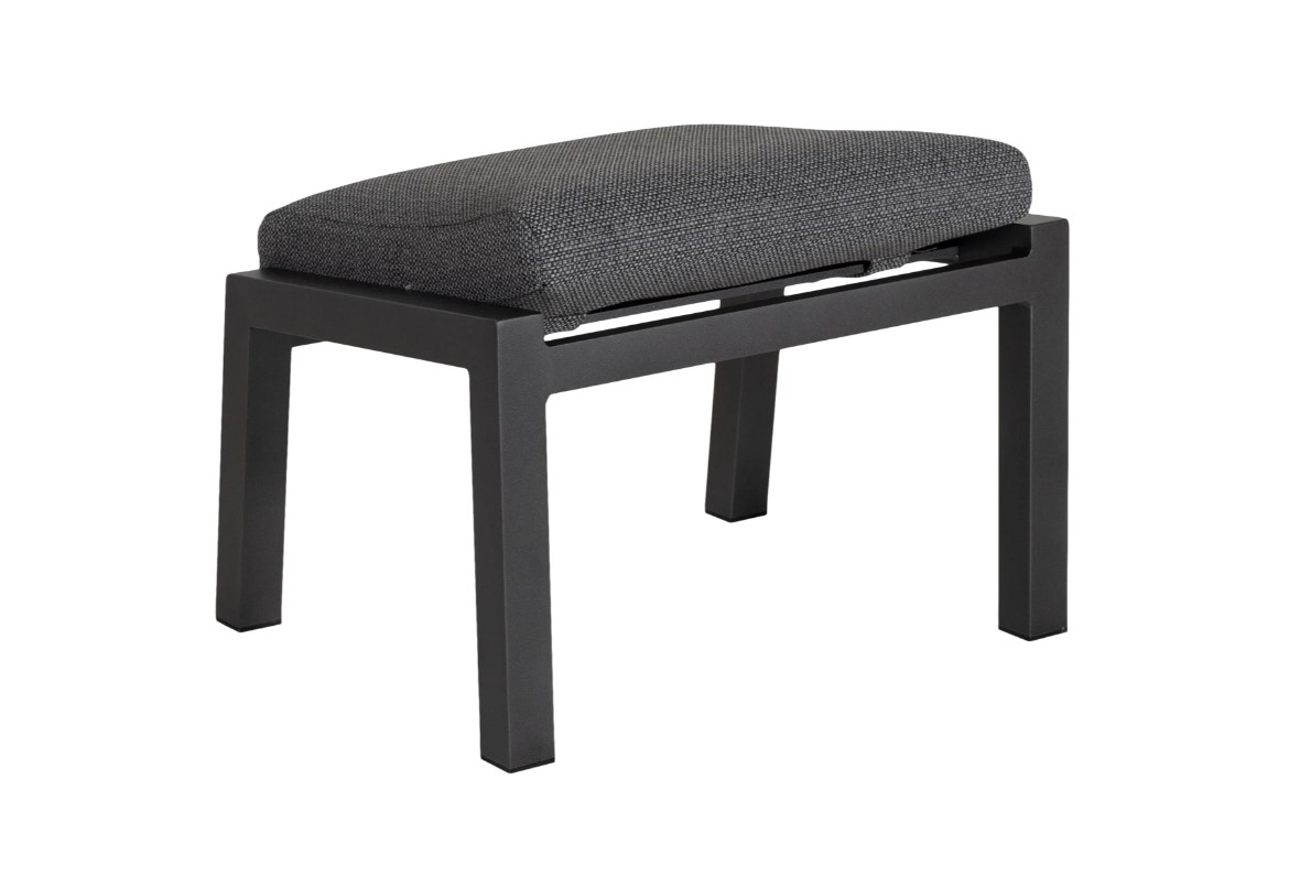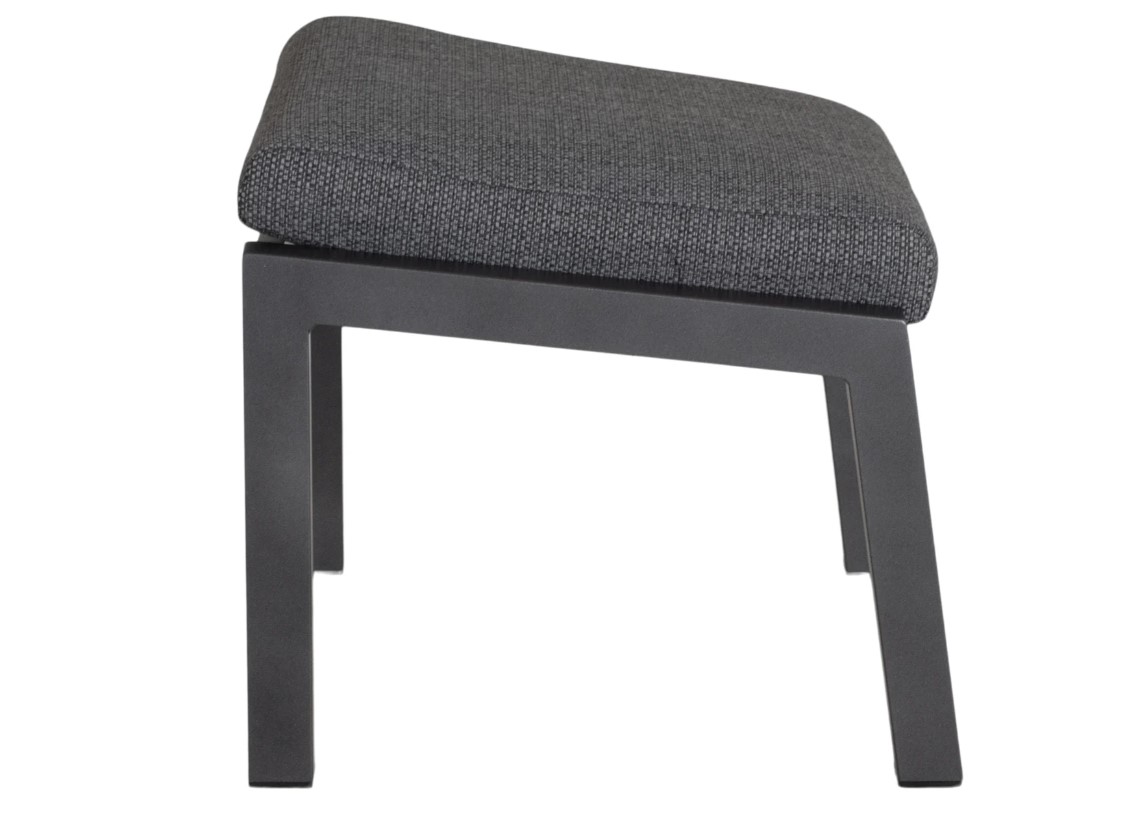 Fotpall i antracitfärgad aluminium med allvädersdyna som tåler att stå ute i regn och fukt.
