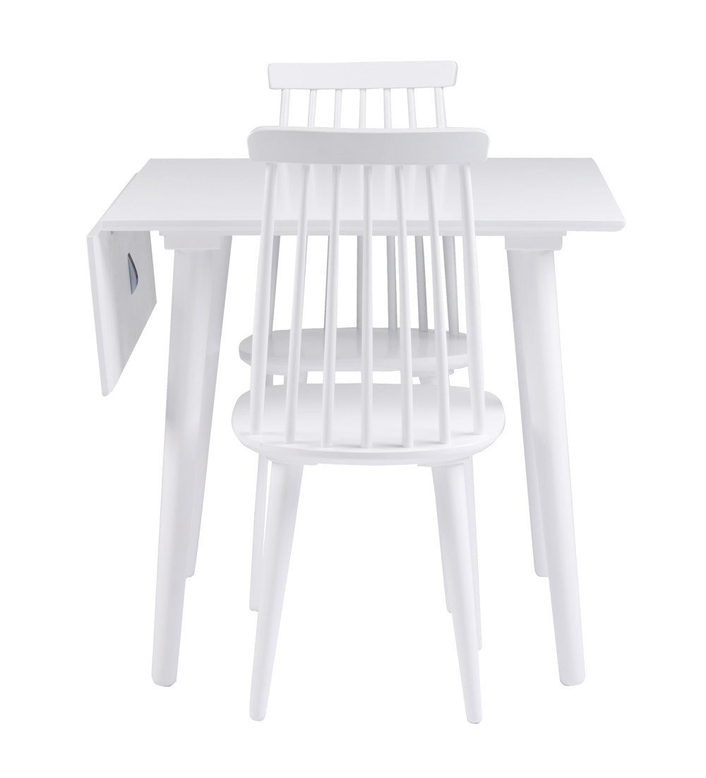 Litet och nätt klaffbord med maxlängd 105 cm. Tillverkat av vitlackad MDF i skandinavisk stil.
