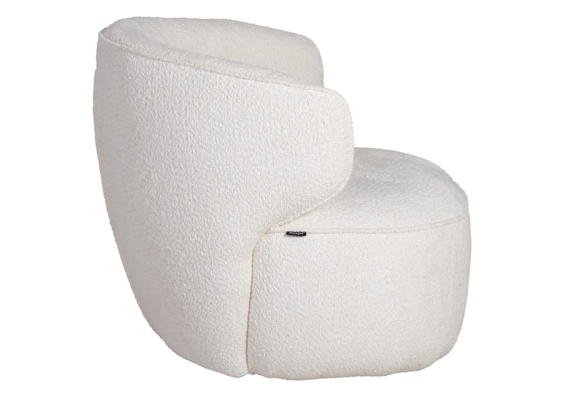 Odense är en trendig och stilren fåtölj med mjuka former i bouclé tyg.