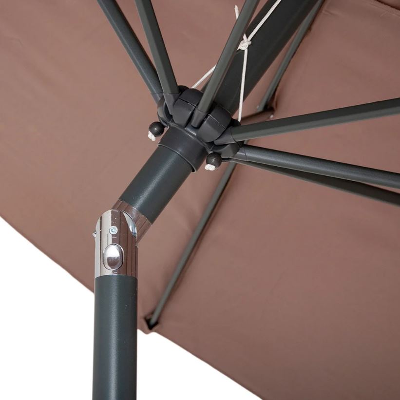 Parasoll i tyg natur med antracitfärgad stång. Tyget är i 180 grams polyester och stången är 48 mm i omkrets.