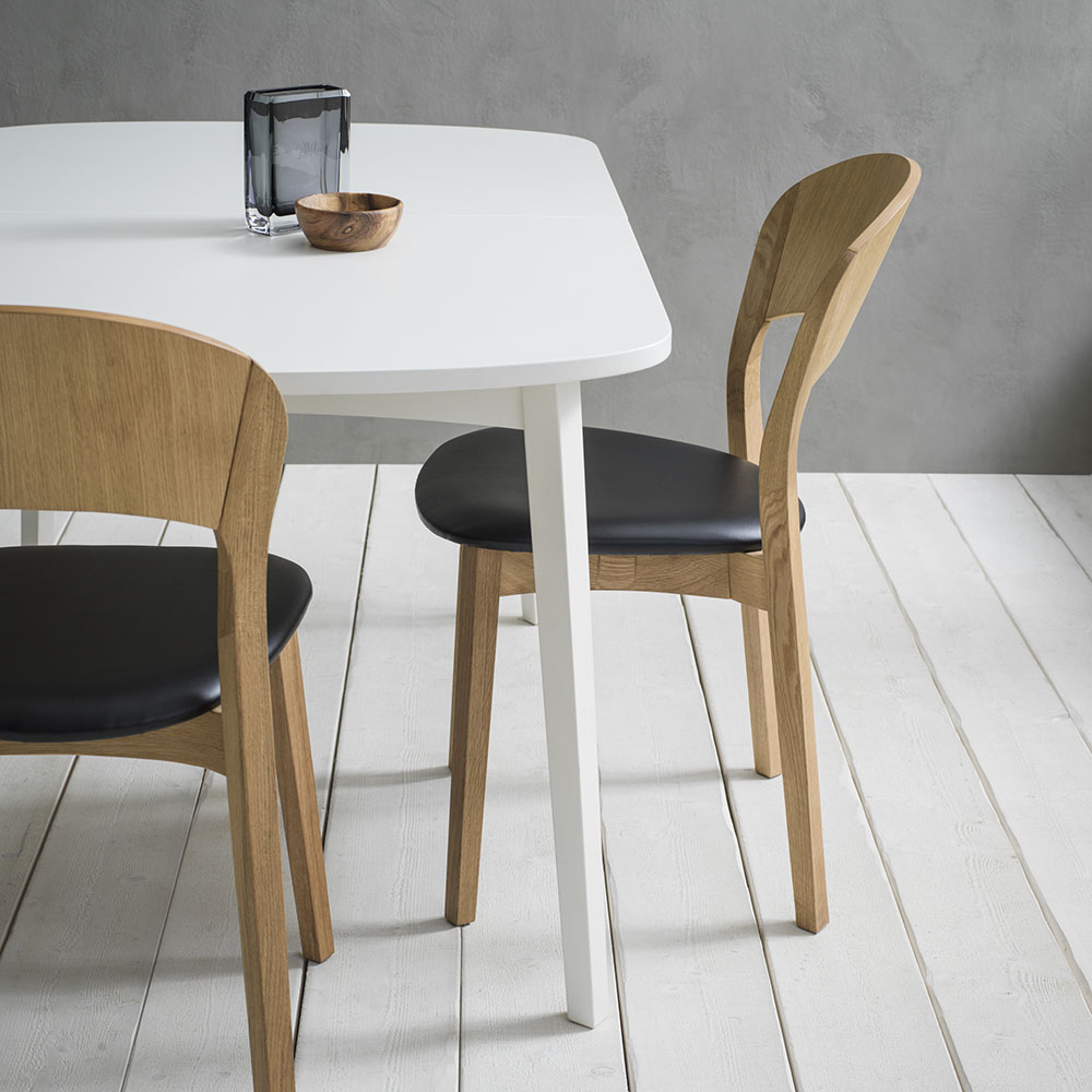 Stiligt matbord helt i massiv ask med rundad toppskiva och raka linjer på de snedställda benen. Utsökt design av Markus Johansson!