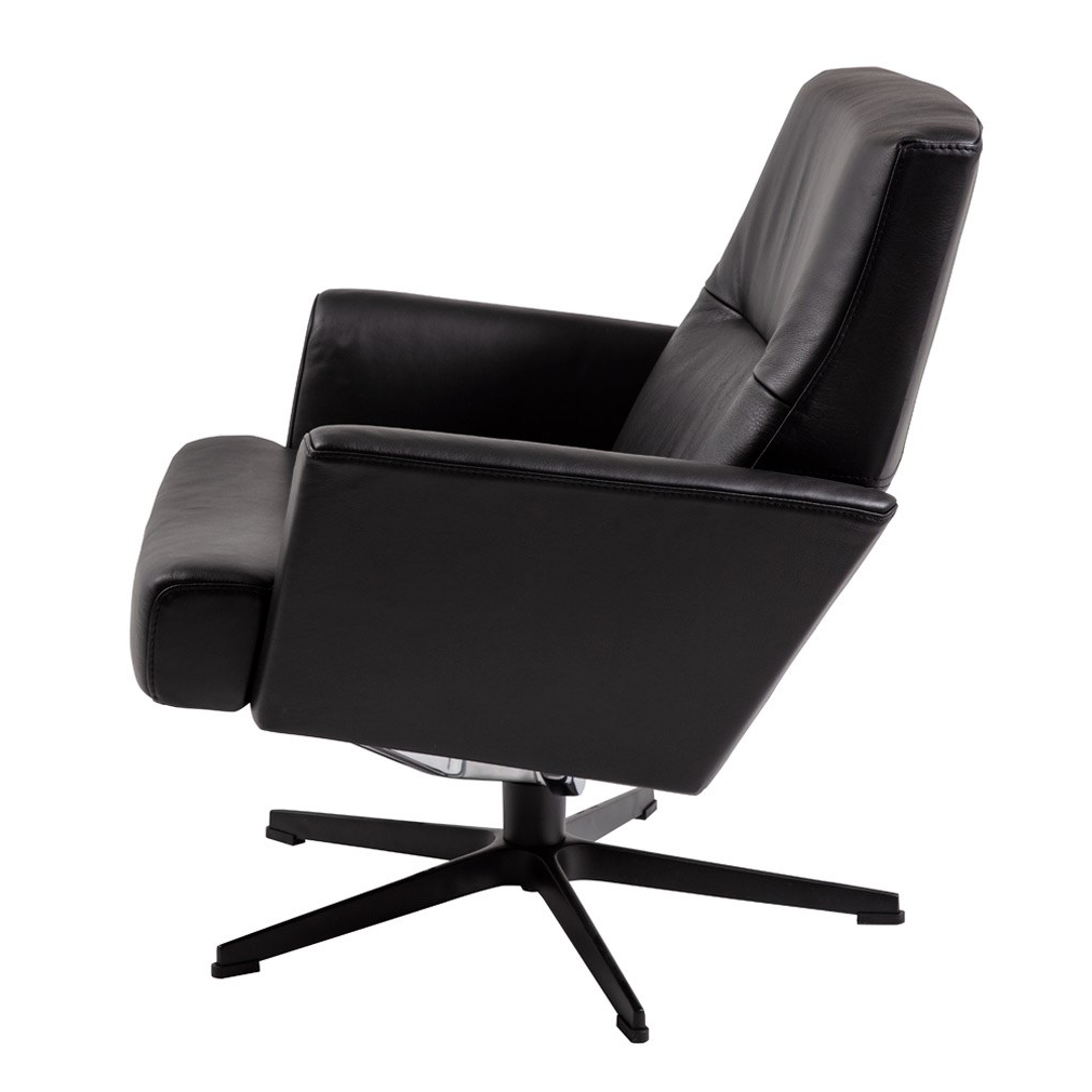 Relieve är en lyxig fåtölj i läder med steglöst fällbart ryggstöd och aluminiumfot. Snurrfoten är utrustad med Syncro Backup, ett system som snurrar tillbaka fåtöljen till ursprungsläget när du reser dig upp.