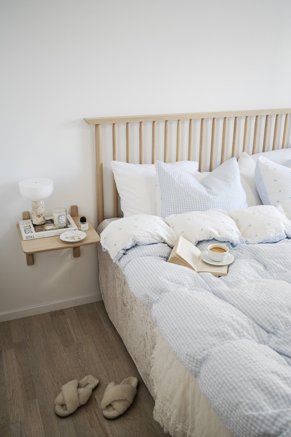 Riggins sänggavel i skandinavisk design är en unik och stilren sovrumsmöbel av massiv ek som passar perfekt till 180 cm breda sängar. Sänggaveln med de runda detaljerna matchas utmärkt till sängborden Camrose. Kombinera med vägghängda sänglampor eller pendellampor ovanför sängborden för ett riktigt stilsäkert sovrum. Riggins sänggavel matchas även bra med de trendiga pinnstolarna Lotta och Carmen, som exempelvis kan användas som både sängbord och avlastningsyta i sovrummet. Tack vare de justerbara metallbenen kan du själv välja höjd på sänggaveln, från 125 till 149 cm. Finns även i svart ek.