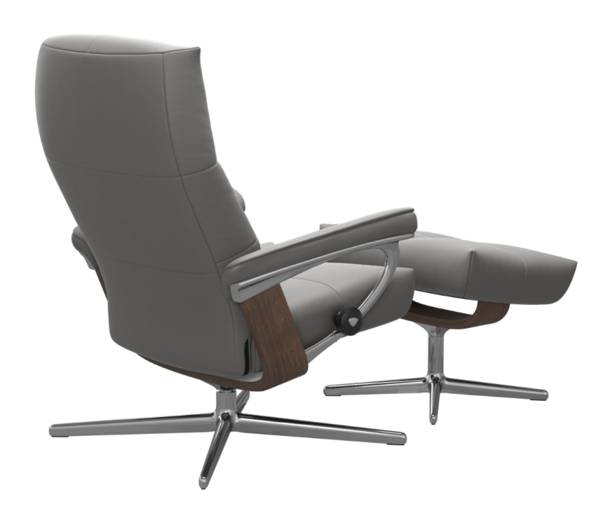 Tillverkad med de finaste materialen har Stressless David-fåtöljen med Cross-underrede en elegant och modern design som smälter sömlöst samman med vilken inredningsstil som helst. Fåtöljen finns i ett brett utbud av fantastiska färger så att du kan välja den som bäst passar dina preferenser. Vad som verkligen sätter Stressless David ifrån andra fåtöljer är den otroliga komforten den ger. Med sitt patenterade Glide-system anpassar fåtöljen automatiskt efter din kroppsrörelse och ger dig en perfekt balans mellan stöd och frihet. Fåtöljens unika Plus™-system säkerställer att din nacke och ländrygg får tillräckligt med stöd och minskar risken för rygg- och nacksmärta. Men det är det eleganta Cross-underredet som verkligen sätter pricken över i:et. Detta unika underrede är tillverkat av högkvalitativt stål och ger Stressless David-fåtöljen en modern och sofistikerad touch. Det ger också fåtöljen en oöverträffad stabilitet och styrka, vilket gör att du kan luta dig tillbaka och koppla av med fullständigt förtroende. Detta är inte bara en möbel, det är en investering i din hälsa och välbefinnande. Det är den perfekta platsen för dig att koppla av och varva ner efter en lång dag på jobbet, läsa en bok eller helt enkelt ta en tupplur. Lita på oss; när du upplever komforten i Stressless David med Cross-underrede vill du inte sitta på något annat. Beställ din Stressless David idag och ta det första steget mot en hälsosammare och bekvämare livsstil. Du kommer inte att ångra dig! Obs! Avser pris utan fotpall.Produktspecifikationer
