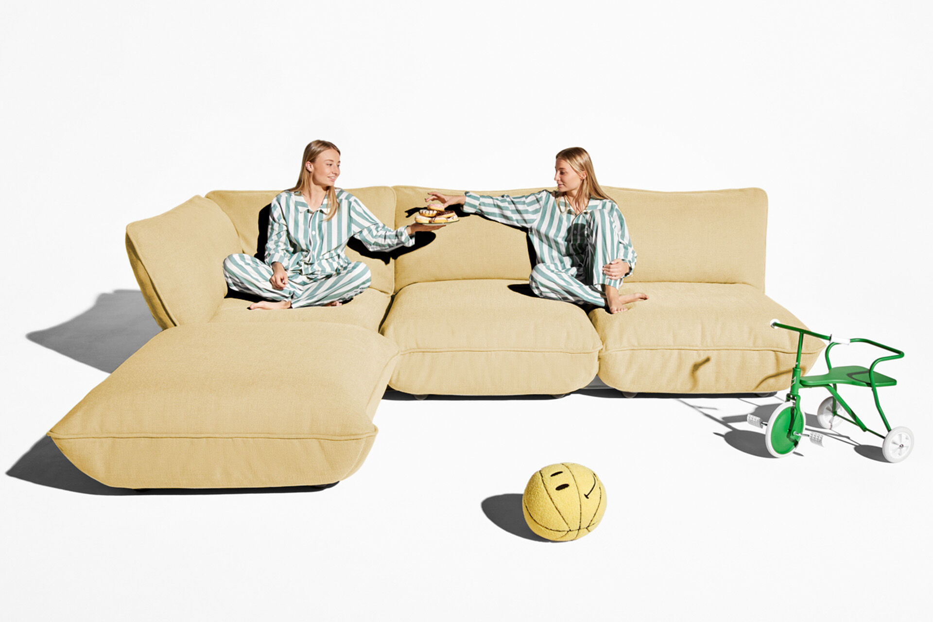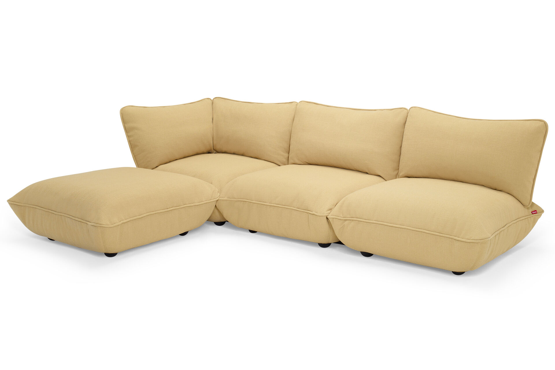 Sumo Corner Sofa är stabil och stark, tålig och stilfull. Och så rymlig att hela familjen får plats utan problem. Designen är inspirerad av en kuddkollektion, men sammansatt på ett smart sätt. Det gör det väldigt enkelt att utöka om du vill tänka större. Den här hörnsoffan vill bara en sak: att bli gammal tillsammans med dig. Och om du någon gång vill göra slut kan hela soffan plockas isär, och alla delar är återvinningsbara. FibreGuard ger bra resistens mot många vanliga hushållsfläckar. FibreGuard-processen ger garnet en beläggning, vilket resulterar i en inneboende styrka och livskraft till fläckresistensen som varar lika länge som tyget.