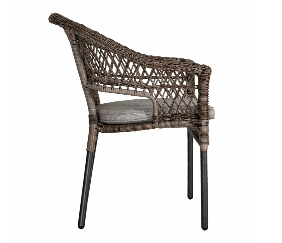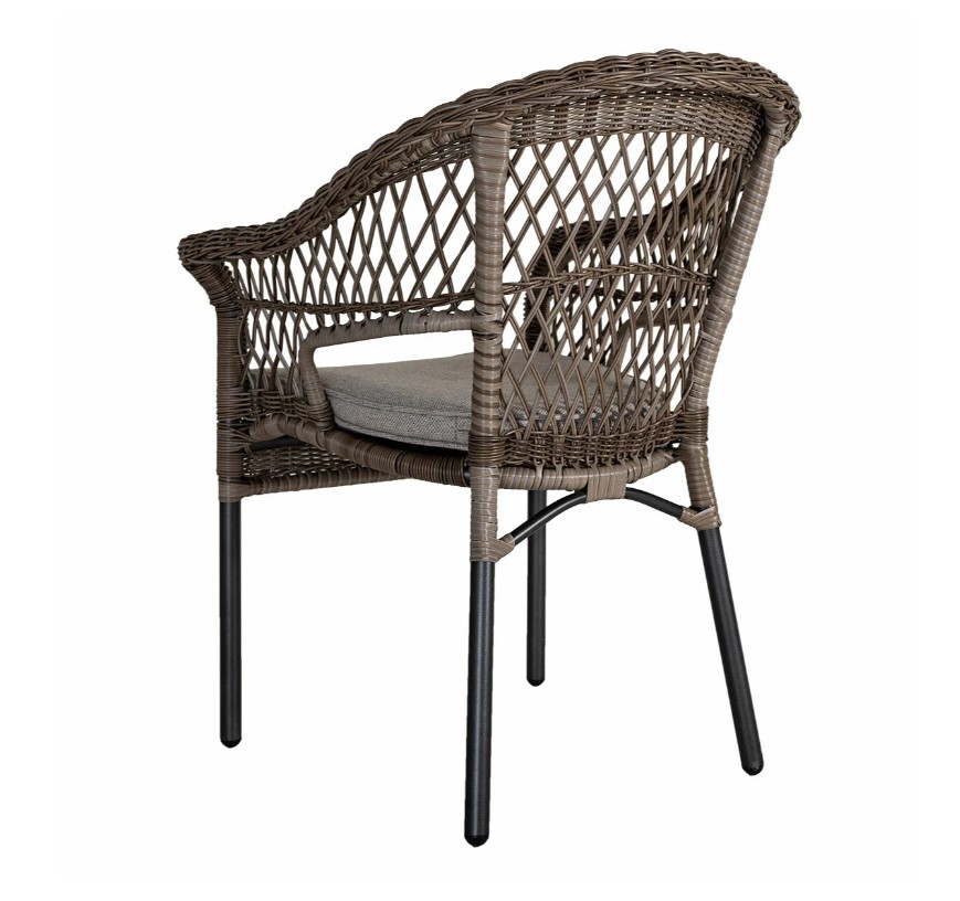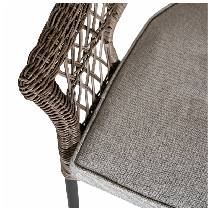 Bekväm karmstol i aluminium med konstrotting i färg driftwood.