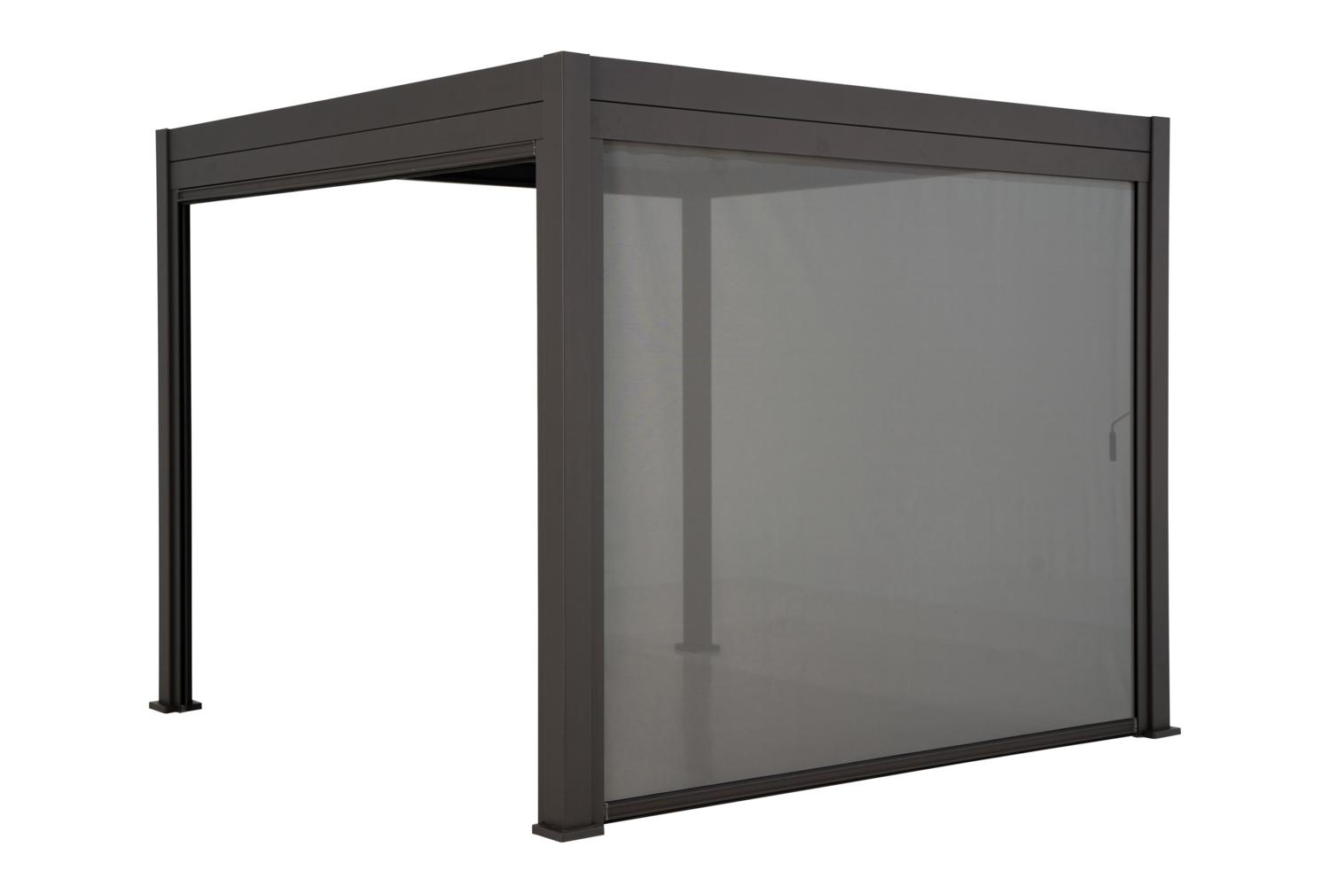 Premium pergola (3x4 m) i en robust konstruktion helt i aluminium (svart). Lamelltak som går att öppna och stänga beroende på hur mycket skydd som önskas. Dränering i stolparna. Sidogardin säljes separat.