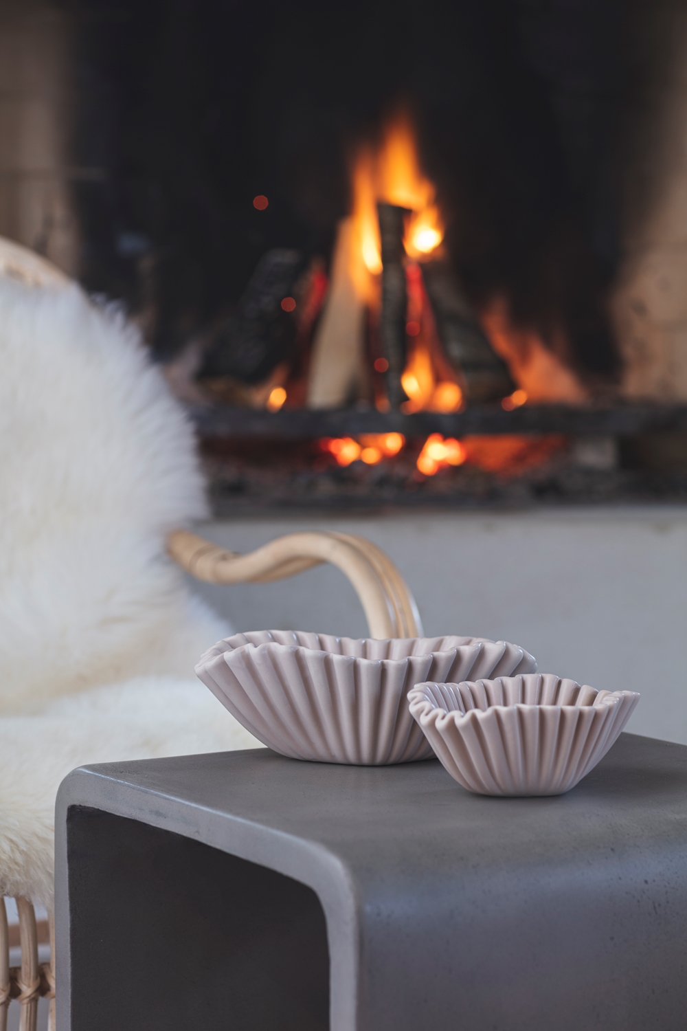 Oemotståndlig skål i keramik med oregelbunden form och veckad design.