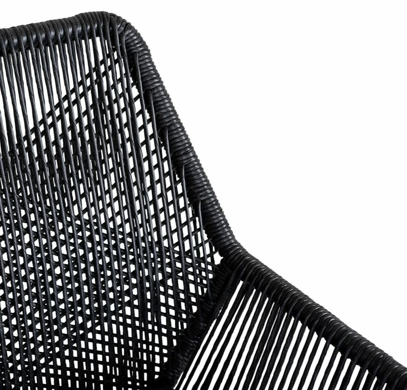 Karmstol i svart konstrotting med grå sittdyna.