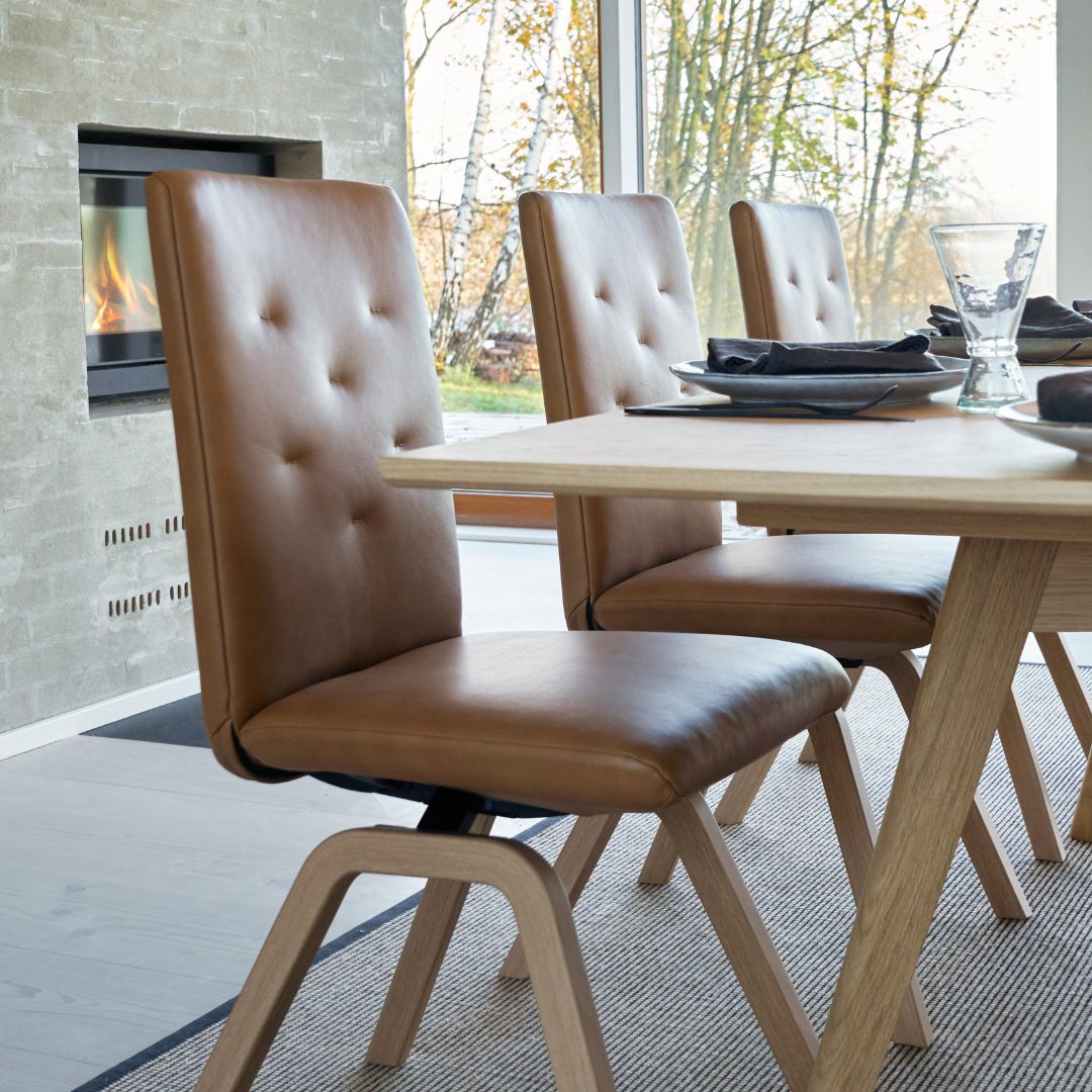 Läder och skinn är ett annat populärt materialval för matsalsstolar. Det är bekvämt och lätt att rengöra, samtidigt som det ger en raffinerad och elegant känsla till rummet. Du kan välja mellan mjukt och fint skinn eller kraftigare läder för en mer robust och praktisk look.