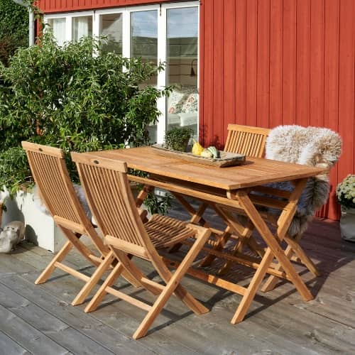 Ett klassiskt material som ofta används för utemöbler. Trämöbler ger en rustik och naturlig känsla och kan vara tillverkade av olika träslag som exempelvis teak, cederträ och ek.
